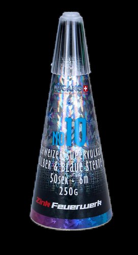 Nach ca. 30 Sek. zusätzlicher Auswurf von blauen Sternen.